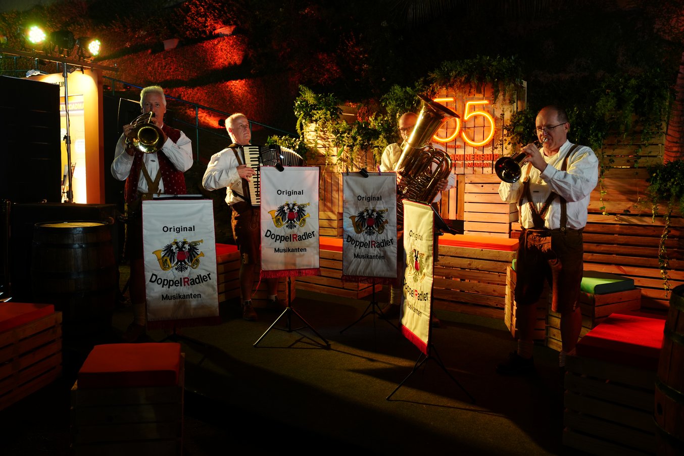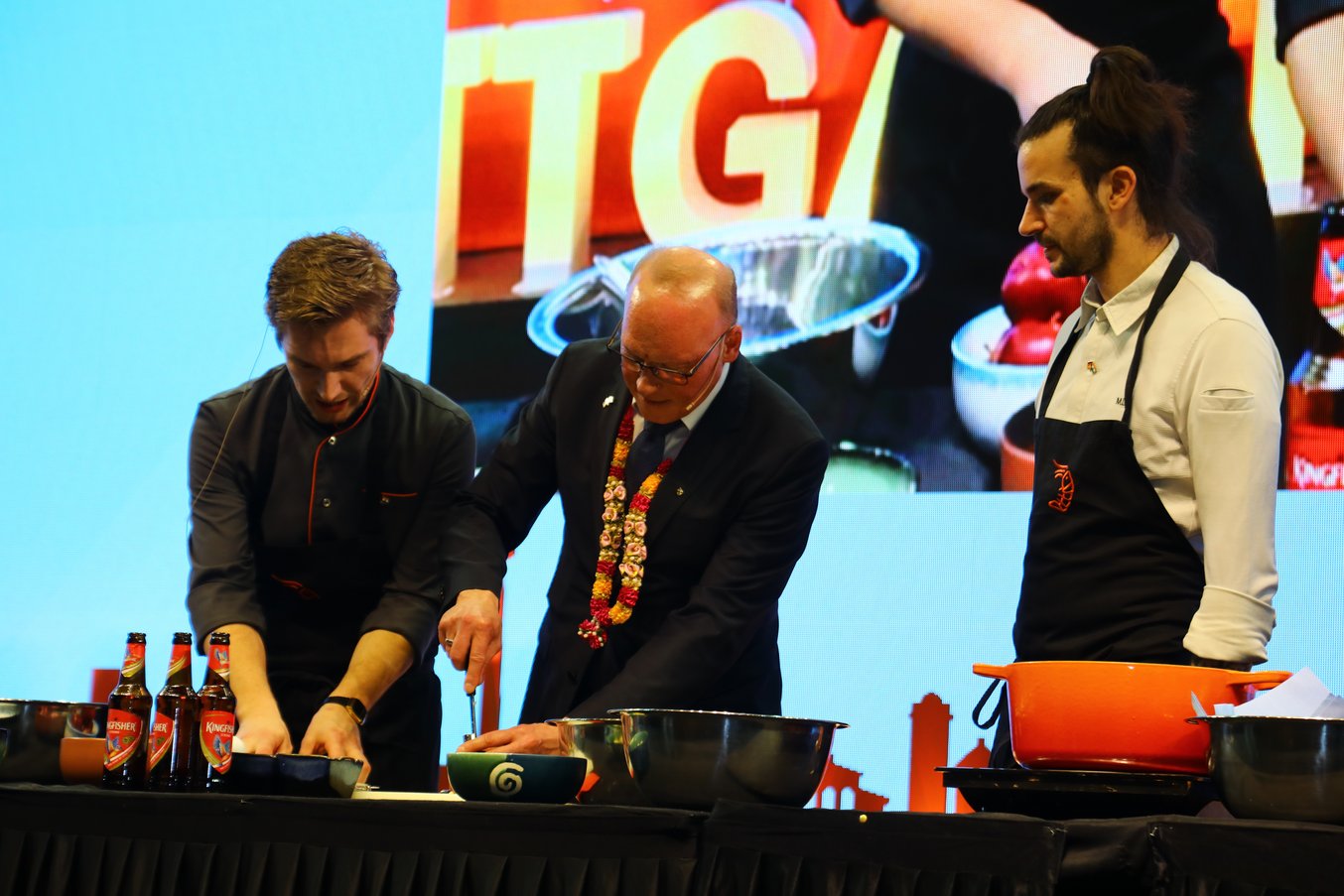 The wine festival was also attended by a large delegation of representatives from the state government with Minister of State Dr Florian Stegmann, the city of Stuttgart with Mayor Thomas Fuhrmann and the city of Karlsruhe with Lord Mayor Dr Frank Mentrup. The approximately 2,000 guests from Germany and India were offered a lot at the wine festival "Stuttgart meets Mumbai": There were Swabian and Indian specialities such as pretzels, spaetzle and Maultaschen, wine from Württemberg and India as well as an entertaining German-Indian stage programme with Swabian folk music and Indian dance. During a live cooking show on stage, chefs Patrick Baumgartner and Marcel Laversa prepared traditional Swabian apple fritters and were supported by Stuttgart's Mayor of Economics Thomas Fuhrmann.